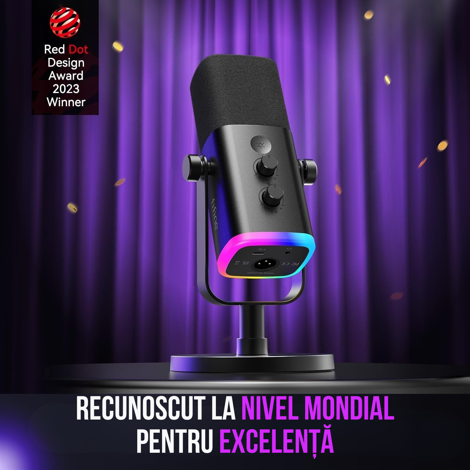 Microfon Profesional FIFINE AM8 – Gaming, Podcasting, Streaming, USB & XLR, Iluminare RGB